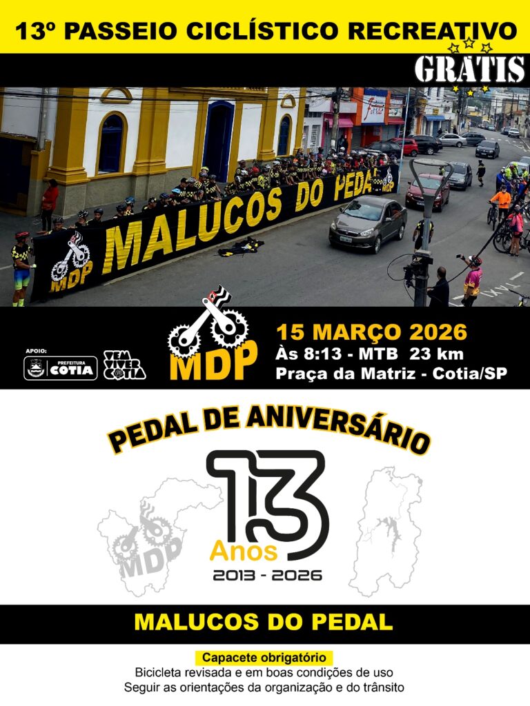 O grupo Malucos do Pedal (MDP) convida todos os ciclistas para celebrar 13 anos de pedal, amizade e aventura!
