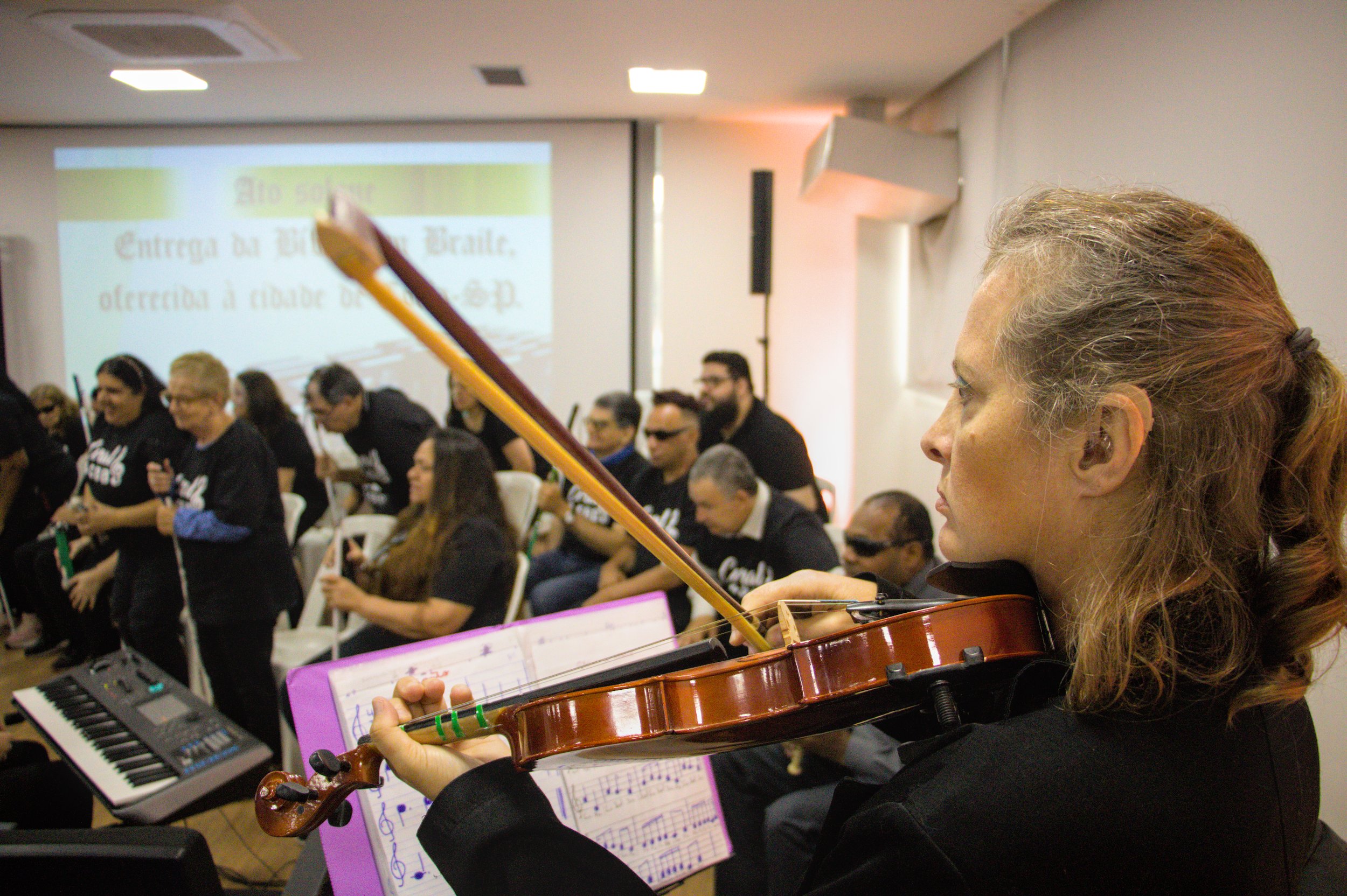 A solenidade de recebimento da Bíblia em Braille foi abrilhantada pela apresentação do Coral Acolher, sob regência da maestrina, Elisabete Jansen. O evento teve ainda as presenças de: Claudia Costa (coordenadora de projetos sociais SBB); pastor Flávio França (Promotor Institucional SBB); pastor Jafé Lourenço de Lima (Igreja Batista da Granja Viana); Agnaldo Alfredo (Secretário de Turismo), Marcos Nena (Secretário de Transportes e Mobilidade), e demais secretários, além dos vereadores, Prof. Osmar (presidente da Câmara), Yago Bezerra e Luizão Tinoco.