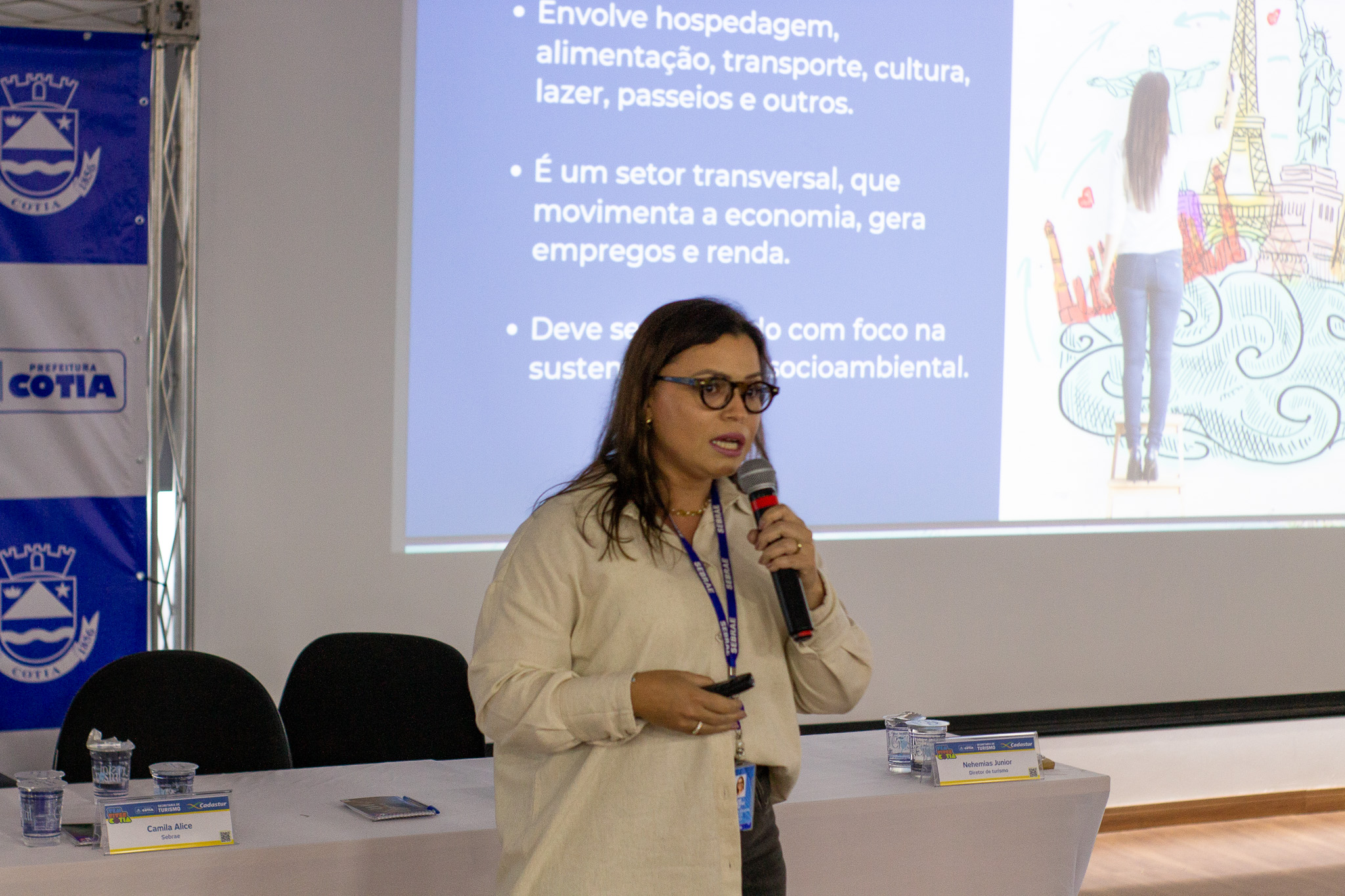 Credibilidade, visibilidade e oportunidades são algumas das vantagens para os profissionais do turismo (pessoa física ou jurídica) que fazem parte do Cadastur (Cadastro de Prestadores de Serviços Turísticos), do governo federal. E para falar sobre a importância de estar inserido neste grupo, a Secretaria de Turismo de Cotia promoveu uma palestra com Camila Alice da Silva Gomes, turismóloga, especialista em planejamento e gestão, mestre em ciências ambientais e consultora de negócios no Sebrae SP, na manhã desta quarta-feira (7/05).